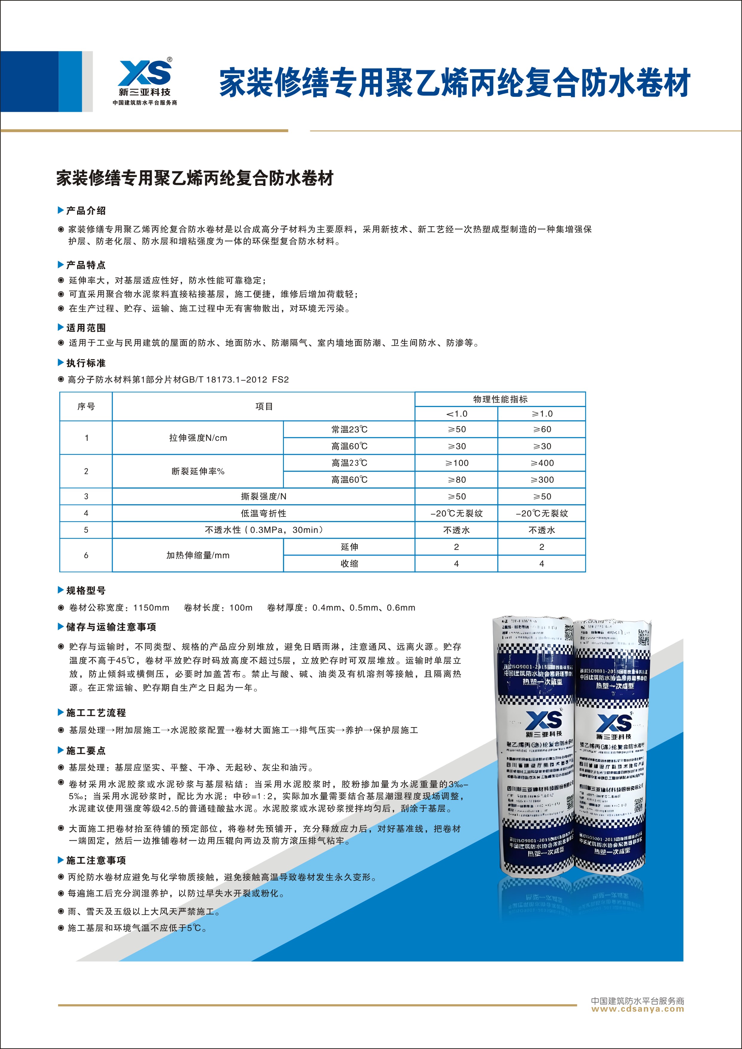 2.延伸率大,對基層適應性好,防水性能可靠穩定;